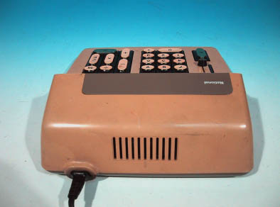 ■Panac Model JE−802 Panac JE−802は、前出のJE−800の後継機種かつ廉価版モデ ルであると考えられる。発売は1974年。デザインは先代のJE−800を 踏襲しつつ、コスト削減を随所に行っている。そのため、全体的に安っぽい感 じになってしまっている。JE−800に見られた工業デザイン的な美しさは それほど感じられない。また、JE−800では乾電池とAC電源の2電源方 式を採用していたが、このモデルではAC電源のみとなっている。このあたり も、コスト削減を重視した仕様であると言えよう。