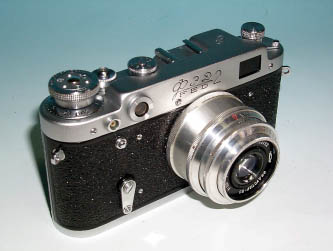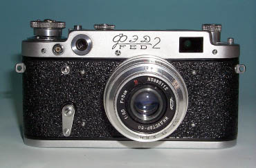 ここに掲載したモデルは、FED-2シリーズの、Type-dと思われるもので ある。本来、Type-dのロゴは、本体正面にキリル文字で大きくFED-2と書 かれているのだが、この個体ではキリル文字と英文字のダブルで記載され ており、後のFED-2 Type-eやFED-3と同じとなっている。どうやら、この 製品はType-dの最後期バージョンで、ロゴのみを従来の表記から変更した ものだと判断できるが、正しいかどうかは不明。このように、素性が微妙 に怪しいところも、いかにもロシアカメラらしいと言えよう。 因みに、FED-2の量産型は、外形的に見て大きく2種類が存在する。 Type-a〜Type-2Lは軍艦部に段差が有り、吊り環が搭載され正面にキリル 文字でFED-2と大きく記載されている。一方、Type-eは軍艦部が平坦とな り吊り環が無く、ロゴがキリル文字と英文字のダブルで記載されている。 また、双方では距離計窓の位置も異なっている。FED-2シリーズでType-e のみ他と形状が大きく異なる理由は、Type-eがFED-3 Type-bの廉価版とし て発売されたことによる。 FED-2 Type-dは、Type-cのシャッタースピード設定部分の構造を改良し たものだと言われている。シャッターは開放から1/500まで、6段階に設 定が可能となっている。本体のシリアル番号は2388274となっていた。 本モデルには、標準でType-cと同様FED-INDUSTAR26m、52mm/F2.8が搭 載されている。このレンズは FED-2 Type-d以外にはFED ZARYAにも搭載さ れていたものだ。その後のモデルであるFED-2Lからは、標準でFED- INDUSTAR-61、52mm/F2.8が搭載される。