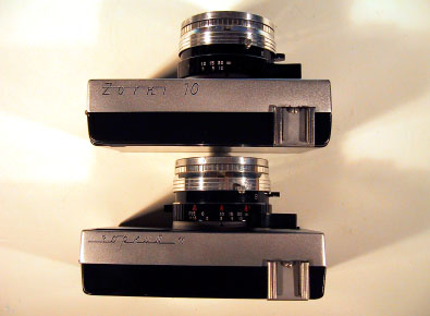 KMZ社のZORKI-11は、前作であるZORKI-10からレンジファインダー部 分を削除したモデルである。ZORKI-11は1964年〜1966年の期間中に、 60,745台が製造された。ロゴマーク以外、ZORKI-10との外観上の大きな相 違は無いように思えるが、良く見るとレンジファインダー部分の削除に伴 う測距窓が無く、そのため本体正面から見たファイダー部分のデザインが 微妙に異なっている。 ZORKI-10のファインダーには、中央部分に焦点調整用の丸い窓があり、 この部分で二重像を一致させてピント調整を行なう。ZORKI-11の場合はフ ォーカシングリングを回すと、ファインダー左端に人間の上半身、全身、 森林のマークが、びっくりするほどの大きさで現れる。距離はこのマーク を参照して目測で決定する。 フォーカシングリングは1.5m〜∞で3段階のノッチが付いているが、 ZORKI-10にはこれが無い。外観デザインは、前述したようにZORKI-10とほ とんど同じであり、1961年に発売されたリコー製EEカメラ、RICOH AUTO- 35Vのコピー製品となっている。