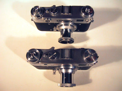 KMZ社のZORKI-5には、初期型と2nd-Versionの2種類が存在する。外観 上の主な相違は、軍艦部の形状、距離計窓の形、ロゴの表記であるが、最 も異なることは、製造台数の違いであろう。文献によれば、ZORKI-5 1st- Versionは1958年〜1959年の期間中、125,000台が製造されたことになって いる。一方、2nd-Versionは、1959年の1年間だけ製造され、その台数は たかだか11,500台だ。これを見る限り、2nd-VersionはZORKI-2と並ぶ製造 台数の少なさで、現在となっては激レアモデルであると言えよう。 ところが、市場に流通している様子から判断すると、全く逆なのだ。 2nd-Versionの方が玉数も多いし値段も安い。一方、1st-Versionとなると 流通量が極端に少なくなり、値段もアップする。ショップの中には、レア モデルであるとわざわざ断り書きを入れているところもあるくらいだ。 真相については、不明だ。通常考えると、製造期間が長かった1st- Versionの方が製造台数が多いと思われる。そして、製造年が少しでも新 しい2nd-Versionの方が、現在でも市場に多く残っていると言えなくもな い。この辺りが、ロシアカメラの怪しさであり、醍醐味でもあろう。 ここに掲載したZORKI-5 1st-Versionはシリアル番号5831839で、1958年 製造のモデルである。基本的な構造はZORKI-2Sを踏襲しており、これに フィルム巻上げのレバーを搭載して操作性を向上させている。この巻上げ レバーのメカは、その後発売される一眼レフカメラ、ZENIT-3Mにも使用さ れている。