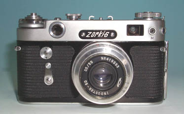 KMZ社のZORKI-6は、35mmフォーカルプレーンシャッター版ZORKIシリー ズの、最後の型番である。ZORKI-6は1959年〜1966年の期間に、約38万台 が製造された。ZORKI-5のセカンドバージョンとしての位置付けで発売さ れた製品であるが、裏蓋部分がヒンジになった点が変更されている。フラ ッシュシンクロのX接点とM接点が搭載されておりセルフタイマーも内蔵 されている。 フィルムの巻き上げもレバー式となり、かなり現代のカメラの仕様に近 づいた製品であると言えるが、反面ロシアカメラとしての怪しさは若干薄 まってしまったようにも思われる。ZORKI-6には、標準でINDUSTAR-50の他 に、INDUSTAR-26M、JUPITER-8などが搭載されていた。 ロゴ表示はZORKI-5の後期バージョンと同様、楕円形のプレートを本体 正面にネジ留めするタイプ。カメラ本体は極めて重い。掲載したモデルは 輸出仕様のようで、製造国表記は英語となっている。ZORKI-4ではシャッ タースピードが12段階に設定可能であったが、ZORKI-6では6段階設定と 非常にシンプルな構造となっている。