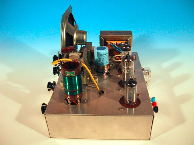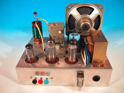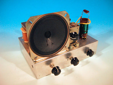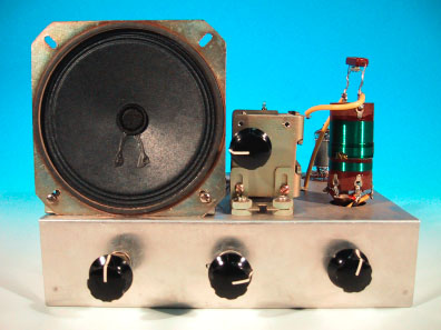 ここに掲載したラジオは、前出の浦沢商会製並三3球ラジオRK−3型と同じ 構成のものだ。但し、浦沢商会のキットが1971年頃の製品だったのに対し、 ここに掲載したものは1974年頃のものであり、3年程度後に作られている。 このラジオは、筆者が中学生の時に、技術家庭の実習として制作したものだ。当 時、技術家庭のラジオ製作実習は、ちょうど真空管方式からトランジスタ方式へ 転換する時であり、他の学校では一部トランジスタを使用した実習を行っている ところもあった。筆者が通っていた中学校では、従来通りの真空管式3球ラジオ を製作していたのである。いかに1974年頃のこととはいえ、真空管式の部品 は手に入りにくくなってきていたのは事実であり、確か翌年の実習からはトラン ジスタラジオになったような記憶がある。 基本構成はごくごく一般的な3球ラジオそのものであるが、浦沢商会のキット と異なり、シャーシは自分で加工しなくてはならないし、前面化粧パネルも付い ていない点が、いかにも実習教材らしい。
