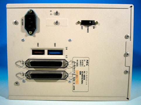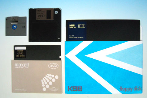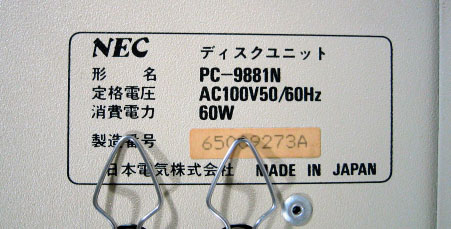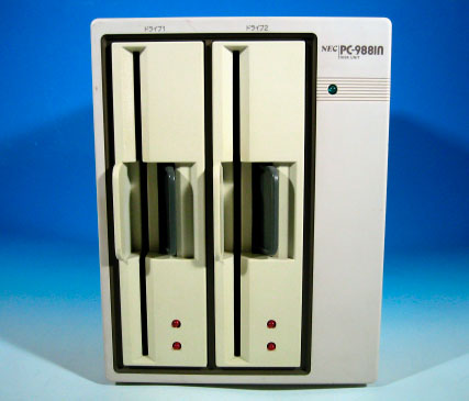 NECが1986年に製造した8-inch FDD、PC-9881n。当時PC98シリーズの外部記 憶 装置として、主にビジネス用途に発売された高価な製品だった。8-inchはおろか 5.25-inchすら死滅しつつある現在、8-inch FDを実用として使っていた人は、か なり年配の方だろう。筆者はその昔、MD(ミニディスクでは無いので念のため) という、やはりNECのx86 CPUを使用した組込み型システム開発装置で、8-inch FDを使っていた。当時はMS-DOSが普及する前であり、コンカレントCP/M 86をOS として用いていたものだ。因みに使用していたMDには8-inch FDが4台搭載され ていた。 ここに掲載したPC-9881nは、PC-98シリーズの外部記憶装置として良く用いら れていたものだ。容量は2D(両面倍密度)で1.2MB。NECは初期の頃から8-inchド ライブをパソコン周辺機器として用意していた。NECではこの8-inchのFD規格と 互換性を保つため、5.25-inchや3.5-inchにも適用したため、IBM系列の製品と非 互換になってしまったのは有名な話しである。本体は小型のベアボーンキットほ どの大きさがある。定格電力は60Wと、たかだか周辺機器とは思えないくらいに 大きい。I/Fはアンフェノールフルピッチの50Pinコネクタで、増設可能となるよ う2個搭載されている。 ケース内部には、NEC製の「FD-1165A」ユニットが2台搭載される。このユニ ットそのものもかなり電力を食うシロモノで、24V(18W)、5V(5W)といった記 述も見られる。本体内部の1/3程度は、極めて大きな電源ユニットと冷却ファン によって占有されている。本体の電源を入れると冷却ファンが回転し、FDDにア クセスしていない時でもかなりの駆動音がする。今流行りの静音PCとは大違い。 8-inchの駆動音は独特で、「グィイイン、グィイイン」というヘッドシーク音 を聞くと郷愁すら覚える。このドライブは、今でもPC-9801DAに接続して使用し ているが、時々「新松」や「一太郎 Ver4.3」などといった当時もののアプリを 起動させるのも趣深い。 8-inchのFDメディアは1972年にIBMによって開発された。ディスク直径は 8-inch(約200mm)もある。記録フォーマットは最初に登場した製品が、1S(片 面単密度)で230KB。その後、1D(片面倍密度)の512KB版が開発され、1977年に は2DD(両面倍密度倍トラック)の1.2MBフォーマットとなる。この2DDが、その 後のNECのFDフォーマットの基準となった。 5.25-inch FDは1S(片面単密度)から始まり、2D(両面倍密度)360KB、2DD( 両面倍密度倍トラック)640KB、2HD(両面高密度倍トラック)と進化して行く。 2HDの時になり、NECでは8-inchとの互換性を重視して、1.2MBフォーマットを採 用したが、IBMでは2DDと同一の回転数を用い、使用トラック数を増加させること により、1.44MBまで拡張したフォーマットを用いた。IBMの5.25-inch ディスク ドライブでは、フリーソフトのJapan2HDを用いることにより、NEC PC-98上でフ ォーマットされた2HD ディスクが読めるというのは有名である。 最後に掲載した写真は、8-inch、5.25-inch、3.5-inchそれに2-inchの各FDメ ディアを並べたもの。2-inch FDは一般的にはならなかったが、その他のメディ アでは、それぞれ2D、2DD、2HDといった数種類の記録密度を持つものが製品化さ れた。