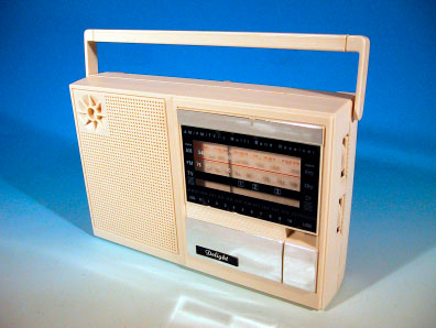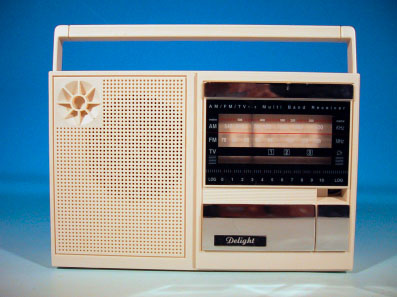 レトロな外観を持つ現代のトランジスタラジオである。Delightという