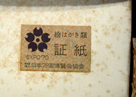 日本万国博覧会記念品。直径14cm程度の大きさの「太陽の顔」である。言わずと知れた岡本太郎画伯の作品。万国博覧会でテーマ館であった「太陽の塔」の壁面に描かれた顔である。財団法人日本万国博覧会協会の証紙付き。製造は近江化学陶器株式会社である。テーマ館である「太陽の塔」は、万国博覧会でも最も人気の高かったパビリオンで、筆者も2時間以上行列して入場した記憶がある。塔の内部には「生命の樹」なるモニュメントがあった。確か最近になって、この「太陽の塔」の内部を見学するイベントが、完全予約制で実施されたはずである。