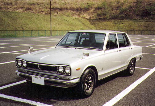 ・撮影日 :1998年04月13日(月曜日) ・撮影場所 :京王多摩センター駐車場 ・使用カメラ:Konica Z-UP80 ・コメント : 日産スカイライン GC10型 前景 両フロントフェンダー後端に、「Skyline」と、青い「GT」バッジを 付けていたことが、2000GT の特徴であった。