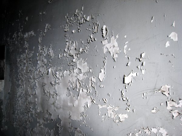 剥がれ落ちた壁面の塗装。 |