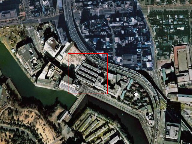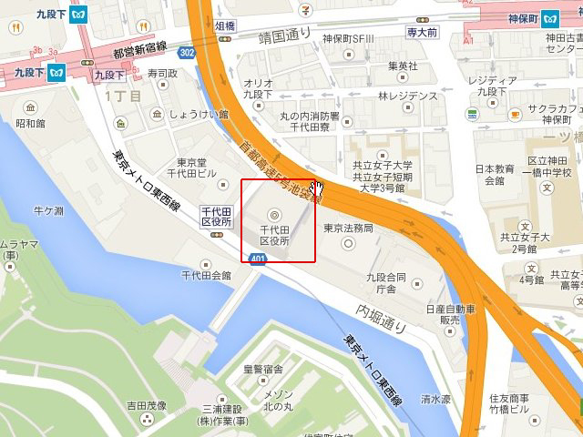 | Google Map上での竹平寮が有った位置。現在は千代田区役所が建っている。 |