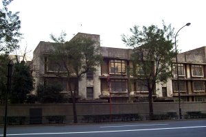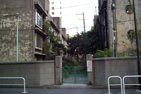地図上にこのアパートについての記載は無いが、敷地内には3階建てのアパートが4棟建っていた。雰囲気的にはちょうど同潤会アパートに似ている。敷地内への入り口は2箇所あり、いずれも鍵はかかっていないものの扉が閉まっていた。基本的に立ち入り禁止であり、居住者以外の者が進入した場合には、直ちに警察に通報する旨の看板が入り口脇にかかっていた。一見廃墟のように見えるこのアパートではあるが、1999年当時は人が居住しており、敷地内には駐車中の車もあった。 さて、このアパートは竹平寮と言うそうである。現地には名称を示す表示は一切無いが、ネットを検索してみると結構掲載されている。場所が場所だけに有名だったようだ。なんでも戦前に憲兵隊詰め所として建設され、戦後はGHQの日本人従業員の宿舎として利用、その後国営のアパートになったそうである。聞くところによれば、2001年に解体されたようである。