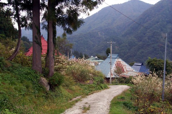 大草連の入り口付近には、公民館や小さな雑貨店などがあり、のどかで懐かしい雰囲気が漂う。道はすれ違いができないほど狭く、しかもかなりきつい上り坂だ。何度もヘアピンのようなカーブを登ってゆくと、山麓の開けた斜面に出る。ここが大草連の集落である。