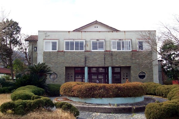 国道136号線から大仁鉱山跡へ向う道の入り口に、古風な建築物が残っていた。1999年1月訪問当時、これが何なのかわからなかったのだが、後にここが「帝産ヘルスセンター」の跡だということが判明した。この帝産ヘルスセンターは、雑誌「萬」臨時増刊号「廃墟の魔力」でも取り上げられており、伊豆の廃墟の中でも有名であったものらしい。