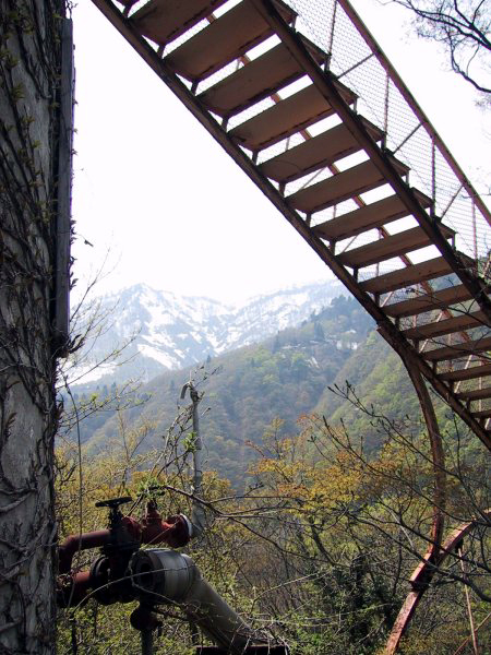 | 葛葉峠付近の揚湯ポンプ塔(2001年05月) |