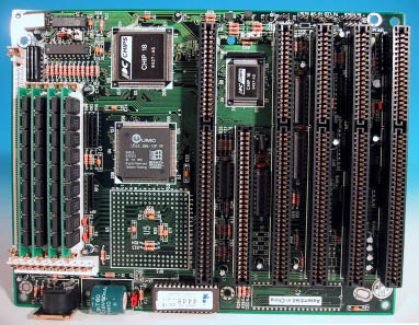 ■CPUにUMC社製U5SX486−33F/40をオンボードで搭載した マザーボード。1994年11月製造。本ボードは残念ながら日本では発売 されなかったという幻の製品。 ■マザーボード上には、208ピンプラスチックQFPのCPUがボード上に 直接ハンダ付けされている。またその隣には、セラミックPGAタイプの CPUも搭載できるように、ランドが設けられている。 ■基板寸法は22×17cmと超小型設計。チップセットはPC CHIPS 社のシールに覆われているため、型番は不明。「PC CHIPS 18」 と書かれたチップは208PinのQFP。PC CHIPS 16と書か れたチップは80PinのQFP。 ■ISAスロット5本、XTスロット1個の古典的な構成。2次キャッシュメ モリは搭載されていない。メモリは30PinのSIMMを4個、72Pi nのSIMMを1個搭載可能。 ■CPUはUMC社が開発したintel486SX互換のもので、inte l社純正よりもパフォーマンスをアップしたもの。CPUクロックは40M Hzであるが50MHzでも安定した動作が可能であった。CPU上には 「Microsoft Windows COMPATIBLE」という文 字と、Windowsのロゴの捺印がある。94年41週製造。開発は93 年となっている。「Patents Pending」の表記あり。 ■CPUクロック設定は33/40/50MHzの3段階が可能。 ■BIOSはAWARD製。キーボードコントローラー用CPUは、チップセ ットに内蔵されているため、ランドのみが残っている。 ■主な使用デバイスは下記の通り。 ・U5SX486−33F/40:UMC社製CPU ・UM9515−01:UMC社製 ・PC CHIPS 18:チップセット(詳細型番不明) ・PC CHIPS 16:チップセット(詳細型番不明) ・AWARD:BIOS ROMチップ ■以下にボードのスペックを示す。