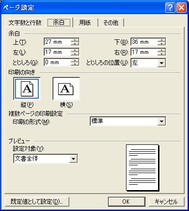 とまあ、こんな感じなのであるが、あんまり小うるさいので、最後に「書き方の指定が煩雑だからといってあきらめないでください。」の1行でも追加したくなってしまう。MS Wordで作成する場合には、MS明朝、10.5ptを使用すれば良いであろう。用紙設定はB5縦。なお、筆者の登記所に提出する場合の、WORDの書式設定例を、以下に貼り付けておくので、もし同じOCR用紙を使用されるような場合には、ご参考にどうぞ。