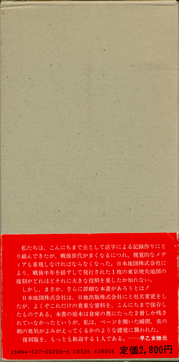 復刻版「コンサイス東京都35区区分地図帖」外ケース 1985年に日地出版株式会社より復刻された、昭和21年発行の「コンサイス東京都35区区分地図帖」外ケース裏表紙。 →高解像度JPEG |