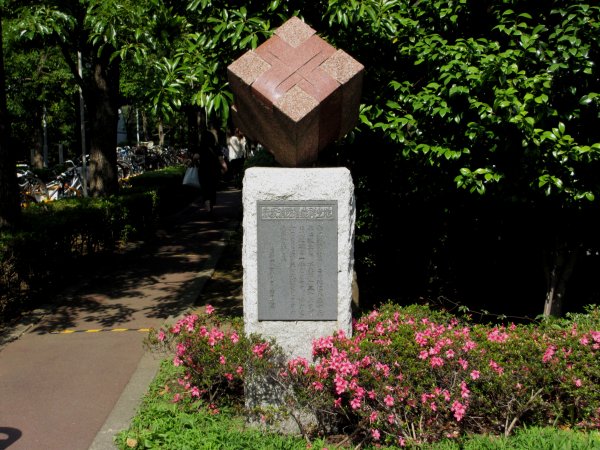 | せっかくだからと、青山ツインビルの周囲をぐるっと回ってみた。記念碑があった。なんでもここは、「赤阪消防署発祥の地」だそうだ。へぇ〜、、、知らなかったよ。 |