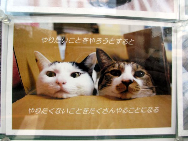 掲示板の写真 傑作集 これも真理だ!というわけで、ただ単に猫好きが猫写真を貼っているのでは無く、その裏には深遠なメッセージが隠されている、ということが判った。 |