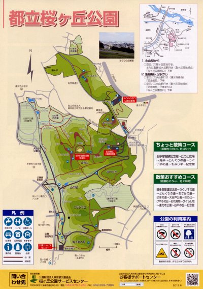 旧多摩聖蹟記念館は、都立桜ヶ丘公園の中にある。都内からは、甲州街道の本宿二丁目交差点から鎌倉街道を南下し、関戸橋で多摩川を渡る。その後すぐ、左折で川崎街道に入り、暫く登り坂を走ると、桜ヶ丘カントリークラブ前の交差点に出る。ここを右折で入れば、都立桜ヶ丘公園の駐車場に到着する。